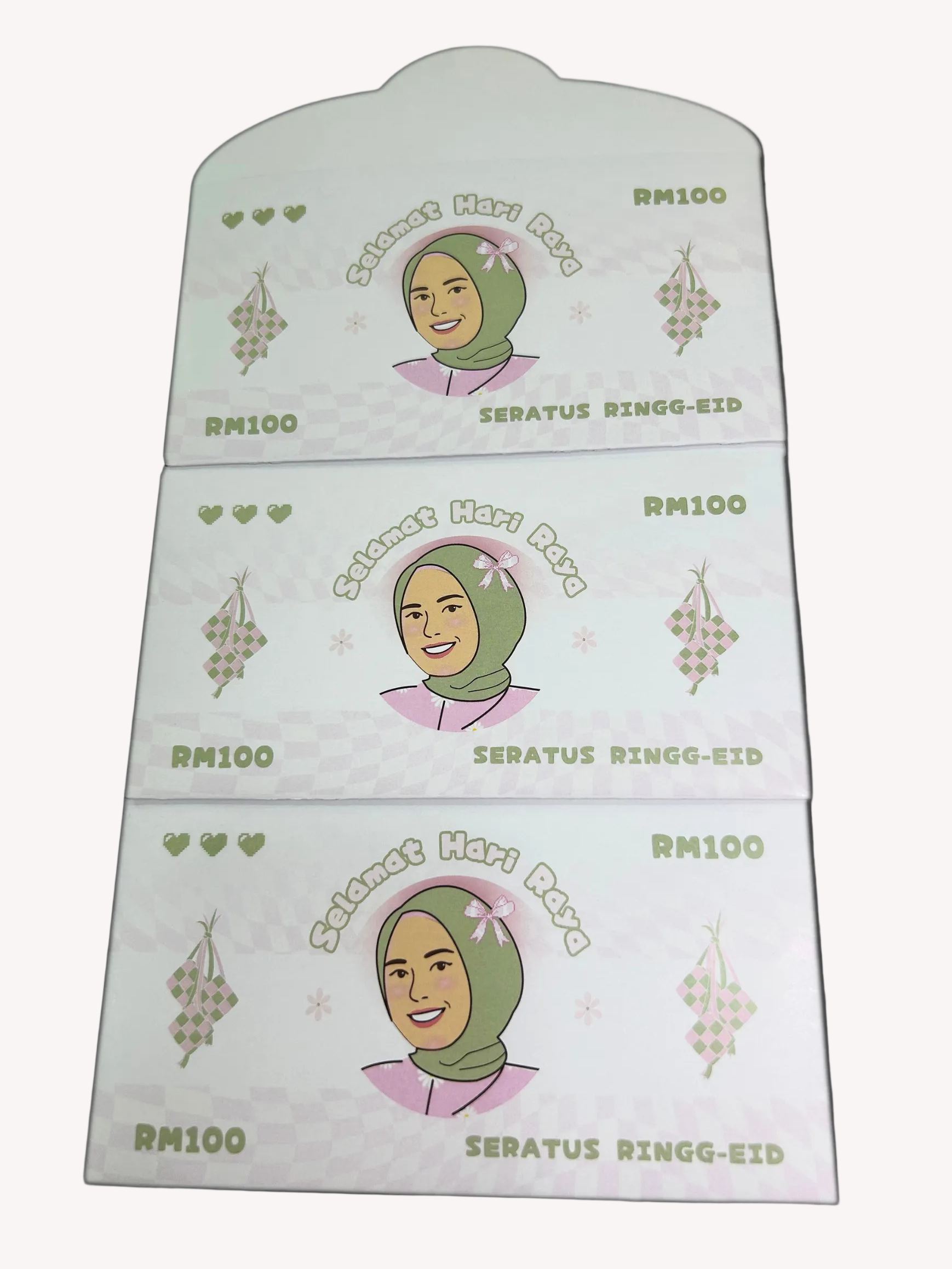 Inside, the envelope is thoughtfully proportioned to hold a meaningful amount of duit raya comfortably, making it suitable for family, friends, and moments that deserve extra care.